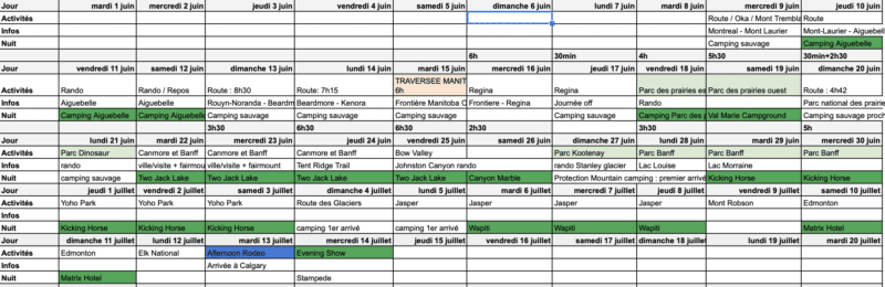 Nous souhaitions passer du temps dans les Rocheuses et nous avons donc prévu plus de 10 jours sur place. Notre but était d’atteinte Calgary vers mi-juin, bien avant le pic estival. Arriver plus tôt n’est pas forcément pertinent selon les activités que vous souhaitez faire. Certains accès et lieux sont encore fermés pour cause de neige et certains campings n’ouvrent qu’aux alentours du 21 juin.